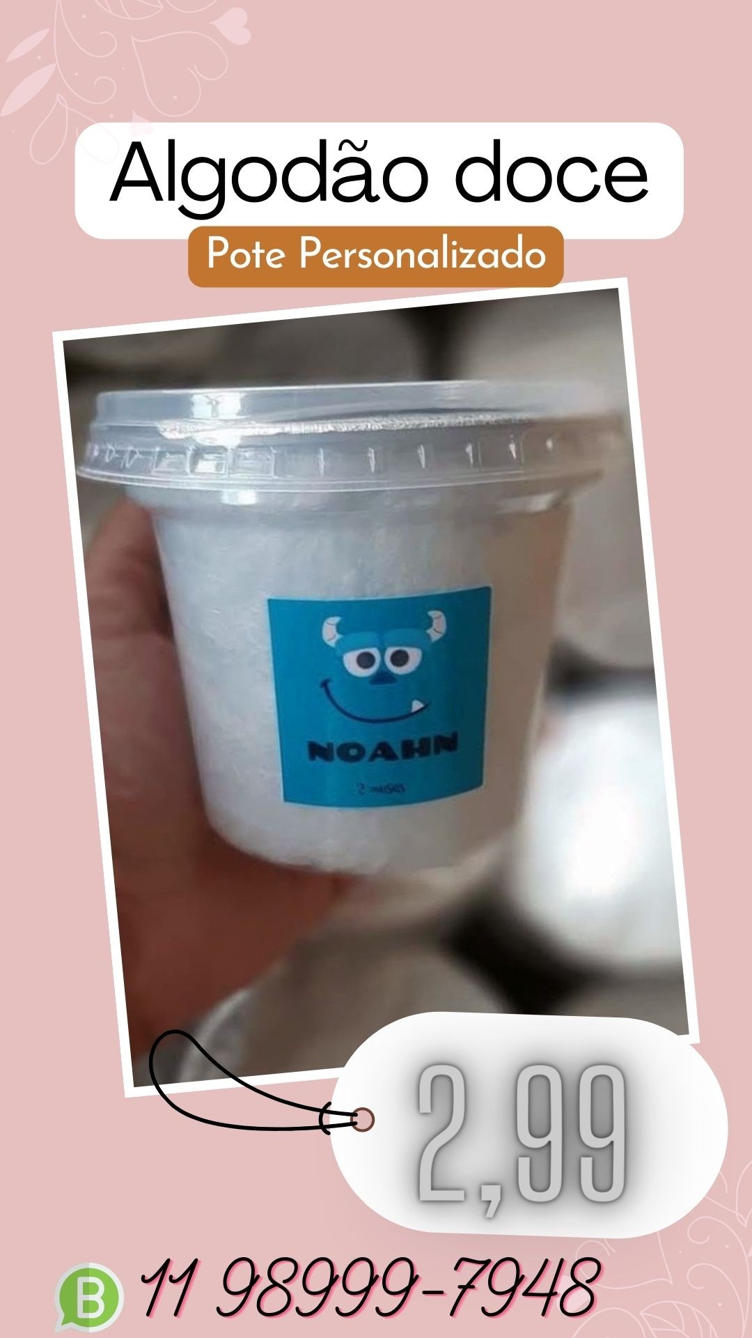 ALGODÃO DOCE NO POTE PERSONALIZADO PARA LEMBRANCINHAS E BRINDES.De:R$ 4,00Por: R$ 2,30