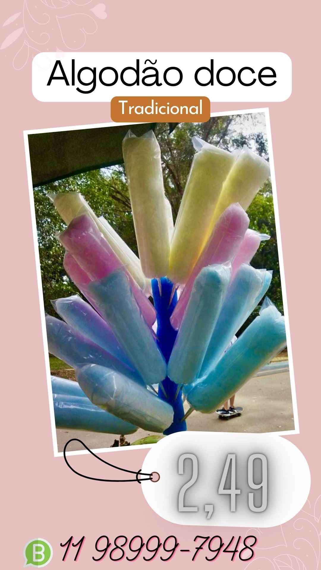 Algodão doce embalado no palito.De:R$ 2,99Por: R$ 2,49 -